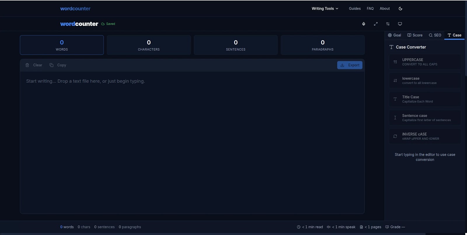 Match readability to your audience: A beginner's guide should score at a lower readability level than a technical deep-dive. Use WordCounter's readability score to calibrate your writing style to your target reader — not just your preferred writing style.