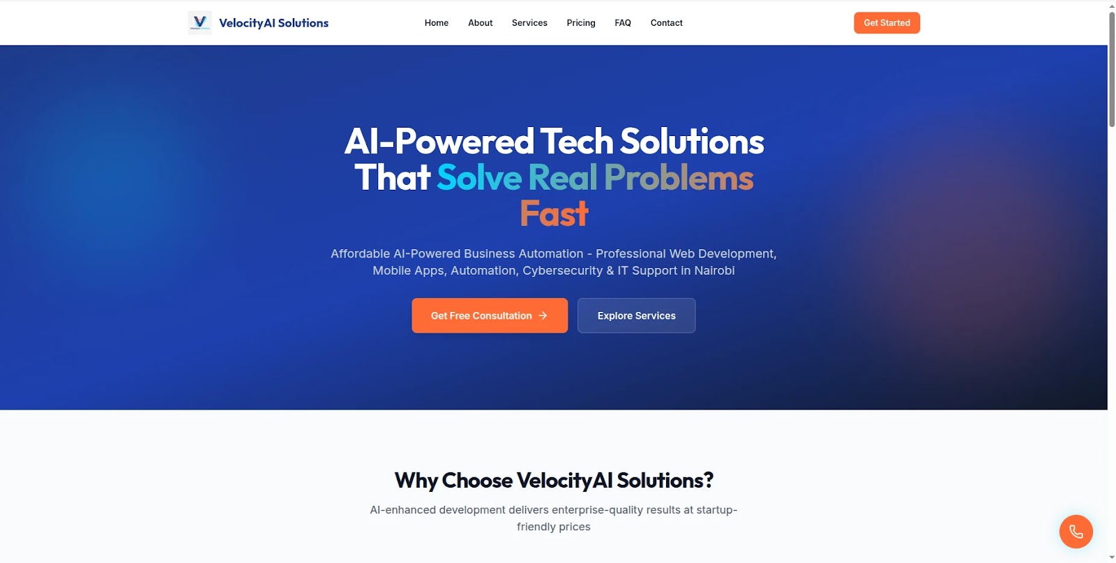 VelocityAI Solutions — Professional web development in Nairobi, Kenya.